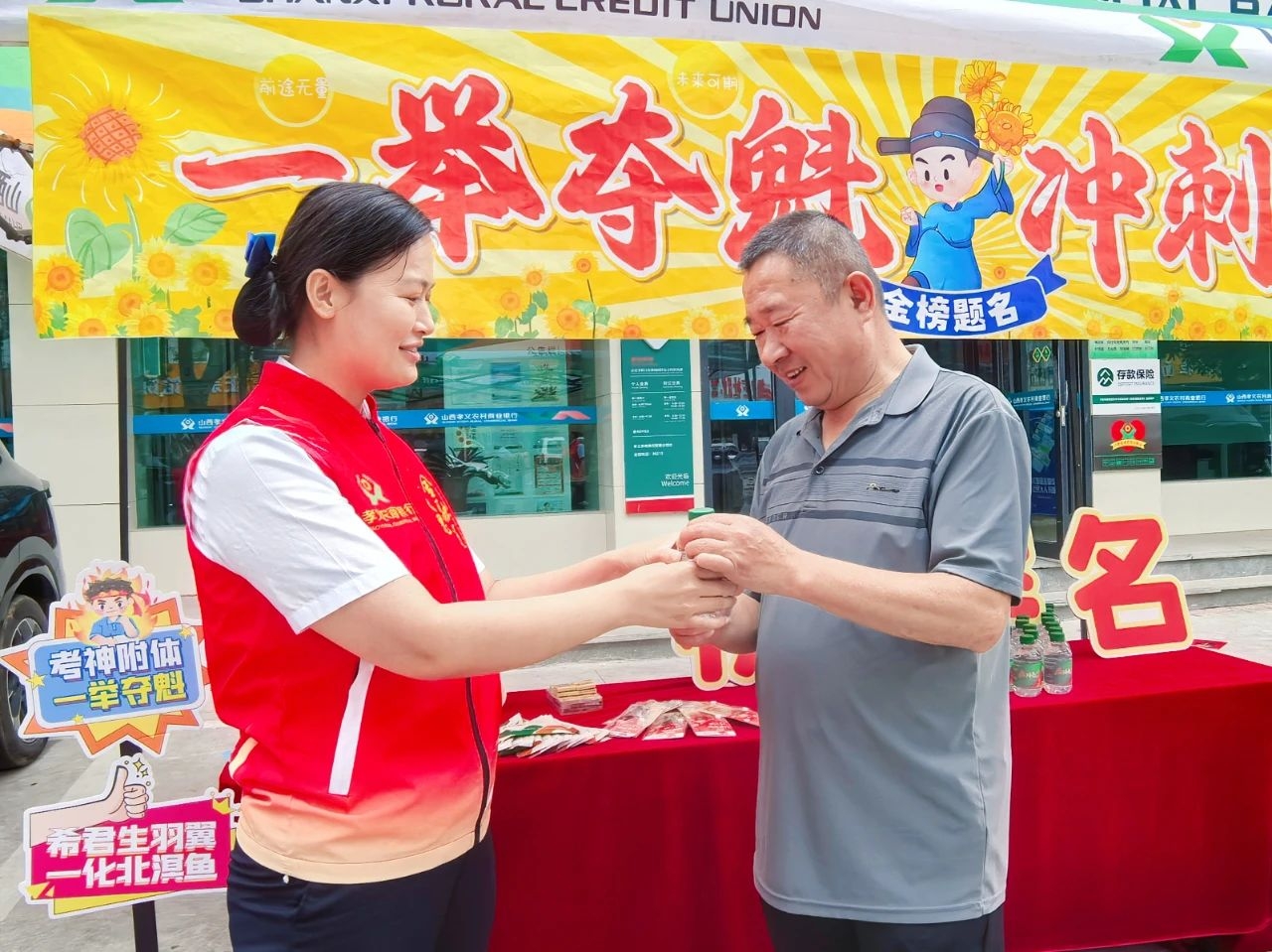 ??靈丘農(nóng)商銀行以網(wǎng)點(diǎn)“愛(ài)心驛站”為載體,設(shè)置“中考休息區(qū)”“家長(zhǎng)等候區(qū)”等,為考生及家長(zhǎng)提供飲水、免費(fèi)Wi-Fi、打印復(fù)印、充電、咨詢(xún)等服務(wù),同時(shí)在考場(chǎng)周邊,設(shè)立“愛(ài)心助考點(diǎn)”,同步配備“中考便民服務(wù)包”,備足文具、礦泉水、防暑藥品、遮陽(yáng)傘、紙巾等。由青年黨員組成志愿服務(wù)隊(duì),深入等候家長(zhǎng)、執(zhí)勤工作人員中,普及防范非法集資、防范電信網(wǎng)絡(luò)詐騙等金融知識(shí)。(靈丘農(nóng)商銀行劉林林)