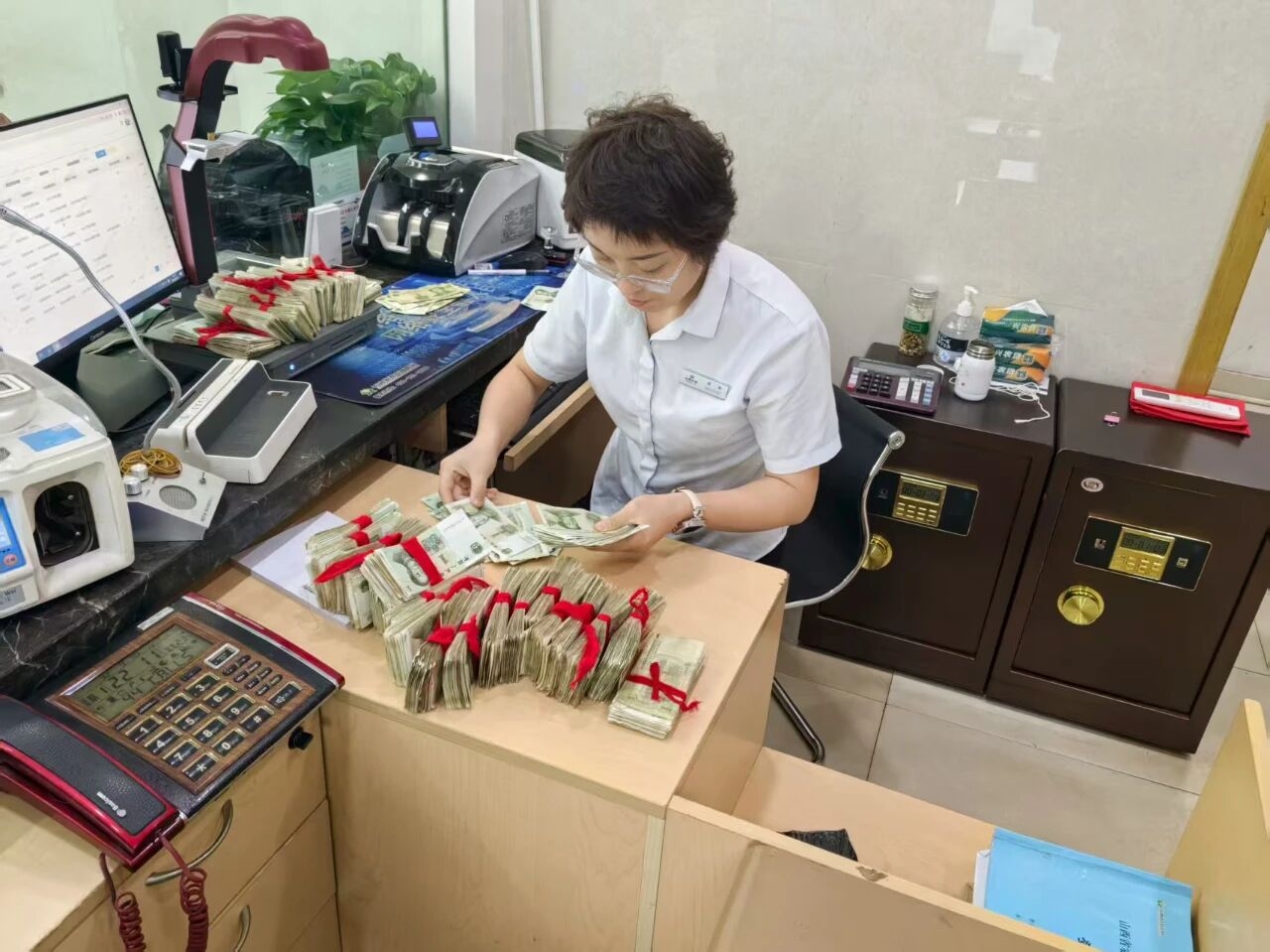 ??得知情況后,該網點工作人員沒有絲毫猶豫,迅速協調安排。考慮到柜臺正常業務辦理不能受太大影響,他們專門騰出一個柜臺作為臨時清點場地,柜員楊帆主動放棄休息時間,參與到這場繁瑣的清點工作中。
